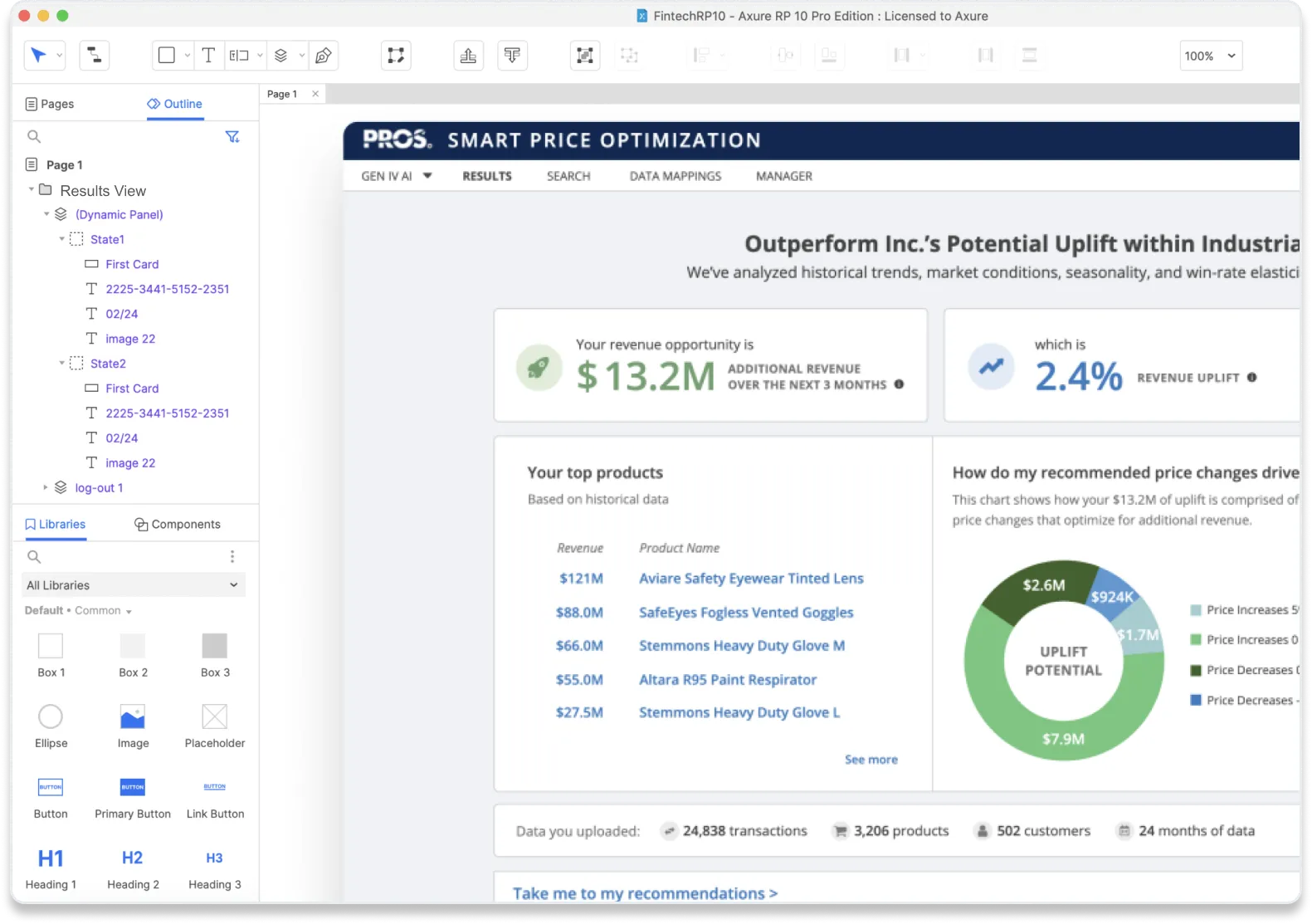 PROS provides AI-driven, cloud-based revenue and price management software used by Lufthansa, HP, Siemans, and more. The PROS's team creates custom-tailored demos with Axure RP to present new capabilities to customers and gather usability feedback, all before development.